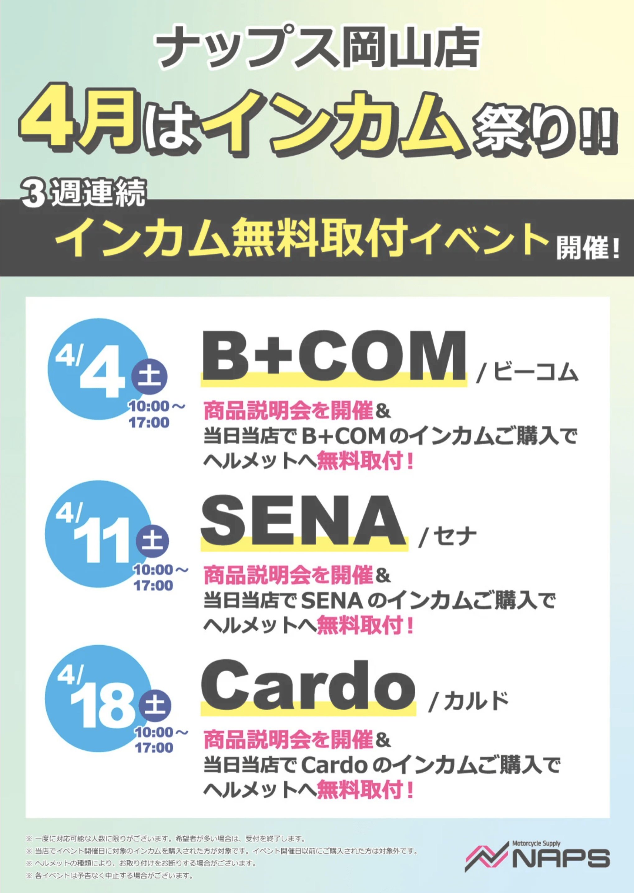 【2026年4月11日(土曜日)】SENAイベント@ナップス岡山店!