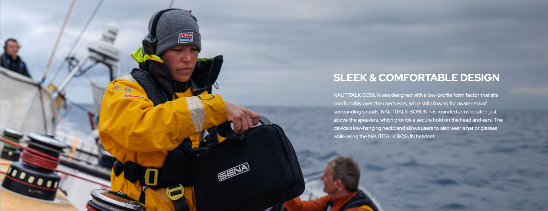 実際に世界的なヨットレース「クリッパー世界一周レース2023-24」では、全クルーがBOSUNを使用し、舵・船首・ナビゲーション間の連携に役立てています。
