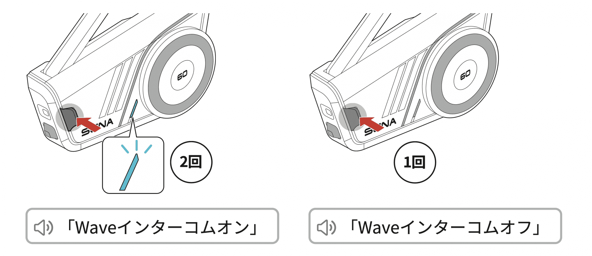 2. 60Sのメッシュボタンを2回タップすると、WAVEインターコムに参加します。
