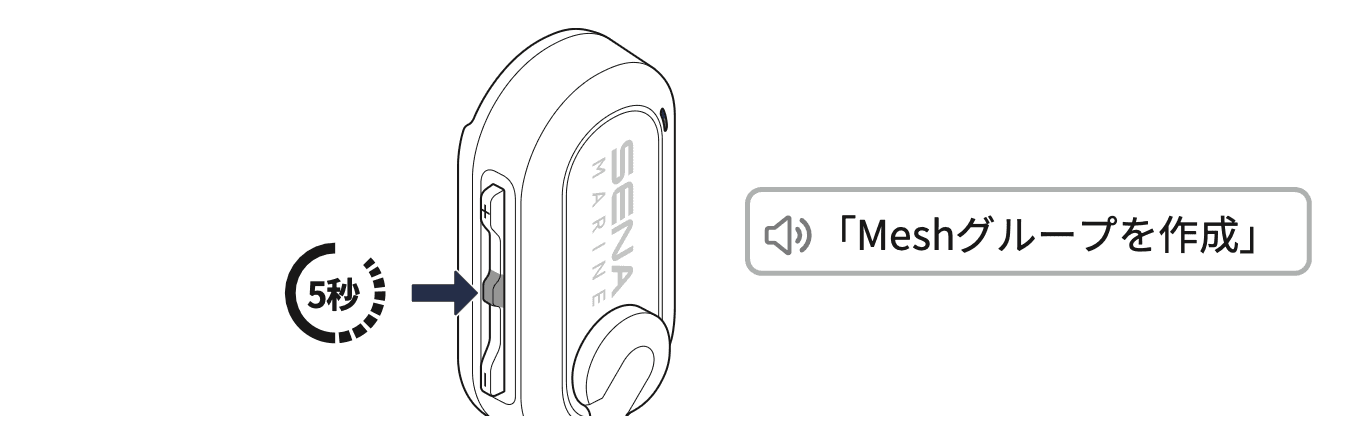 1. MESH(オープンメッシュ)状態の時に、グループに参加する機器のセンターボタンを5秒長押ししてください。