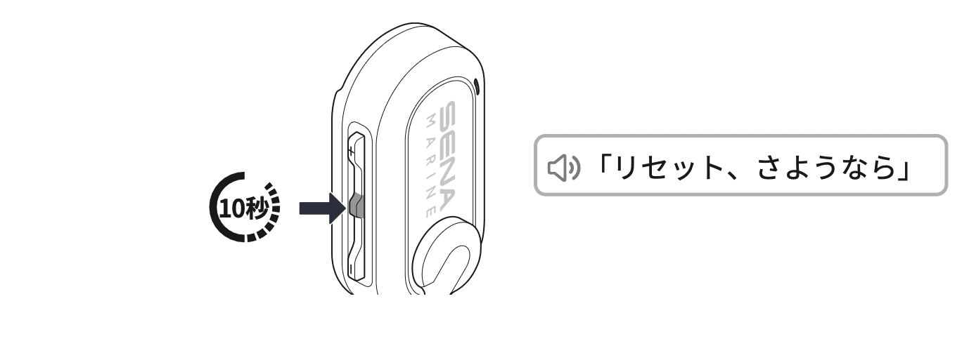 ペアリングなどがうまくいかない時、通話がうまくいかない時などは、設定初期化をお勧めします。センターボタンを10秒長押しすると、設定初期化が実行され、電源が自動でオフになります。