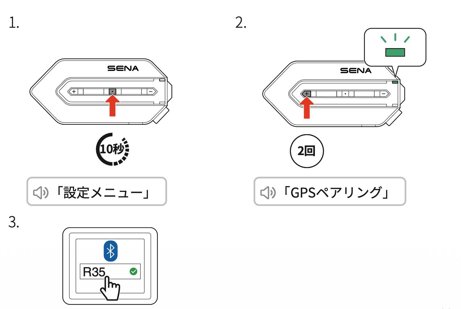 2. +ボタンを2回タップ、「GPSペアリング」という案内が聞こえ、ペアリング開始します。