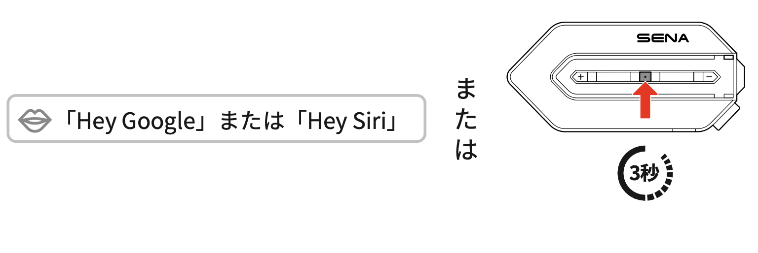 "Hey Siri", "Hey Google"とマイクに向かって話しかけるか、センターボタンを3秒長押ししてSiriまたはGoogleアシスタントを起動します。