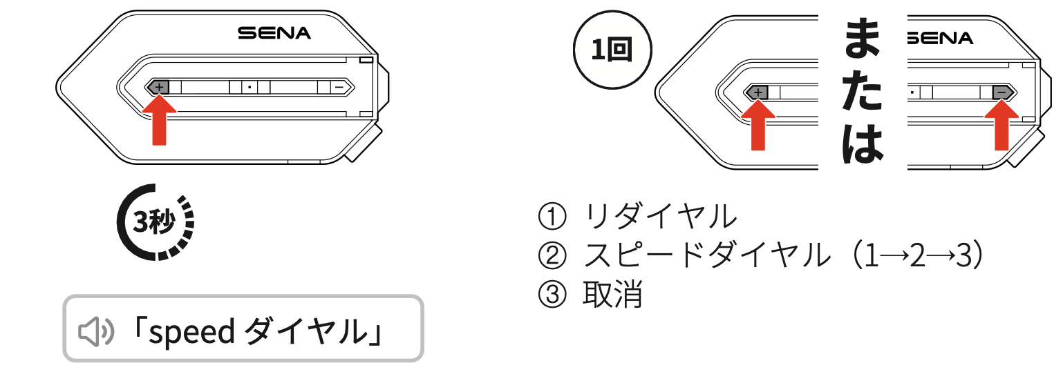 1. +ボタンを3秒長押しすると、スピードダイヤルメニューが起動します。