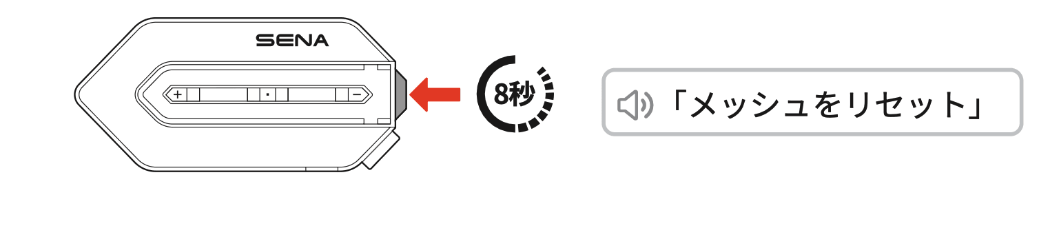 メッシュボタンを8秒間長押ししてください。「ピピ、ピピ、ピピ、ピピ」と4回なったら指を離します。