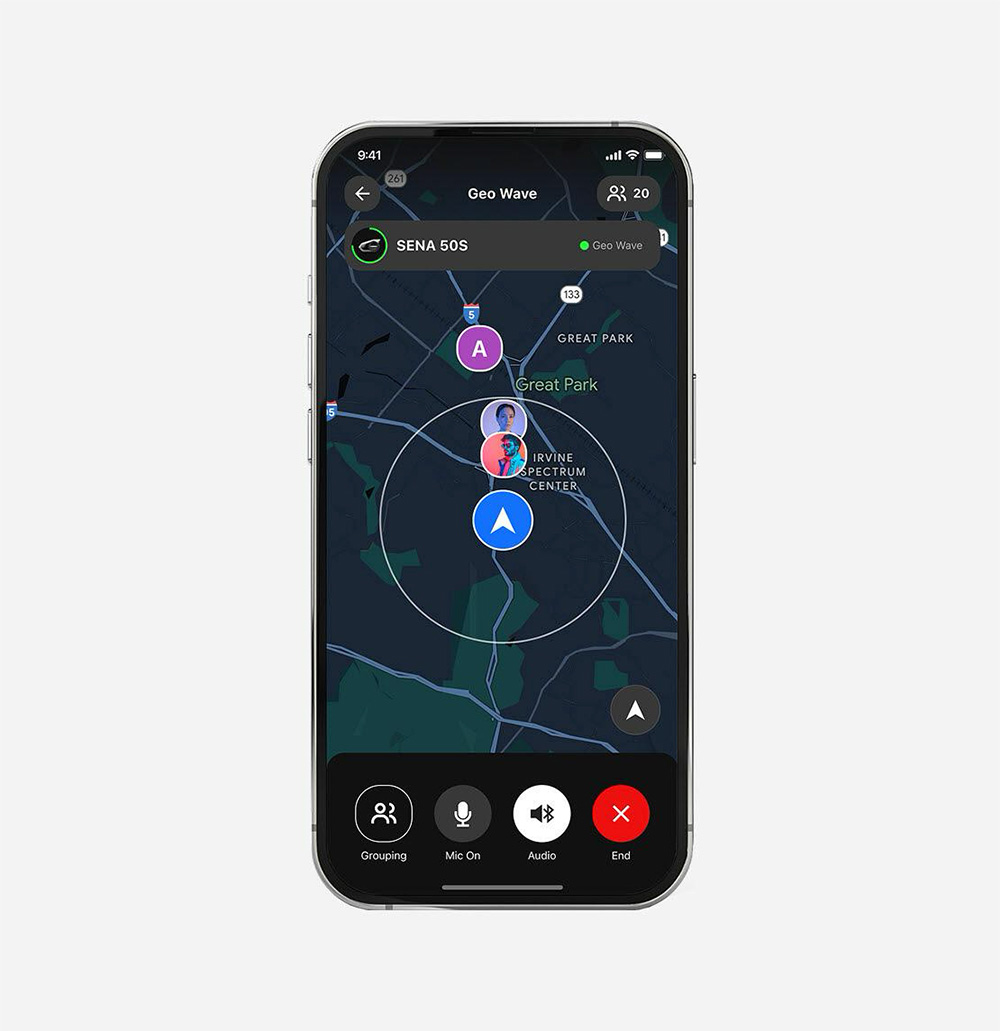 SENA Motorcyclesアプリから、設定変更や音質調整を直感的に操作可能。